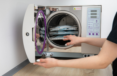 Para instrumentos não metálicos, como algumas pontas das fresas, podem ser utilizadas soluções desinfetantes certificadas que asseguram elevados padrões de higiene. Além disso, o uso de lâminas de bisturi descartáveis elimina o risco de contaminação cruzada.