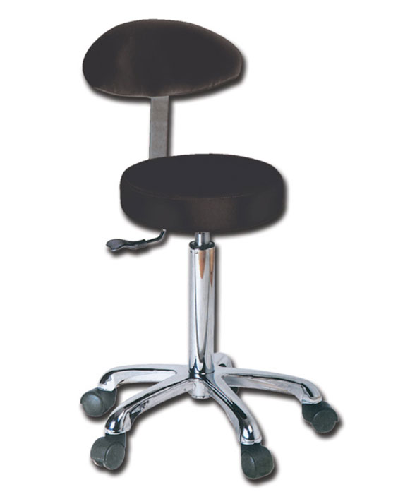 com assento estofado Ø 34 cm e base com rodas - com encosto - preto