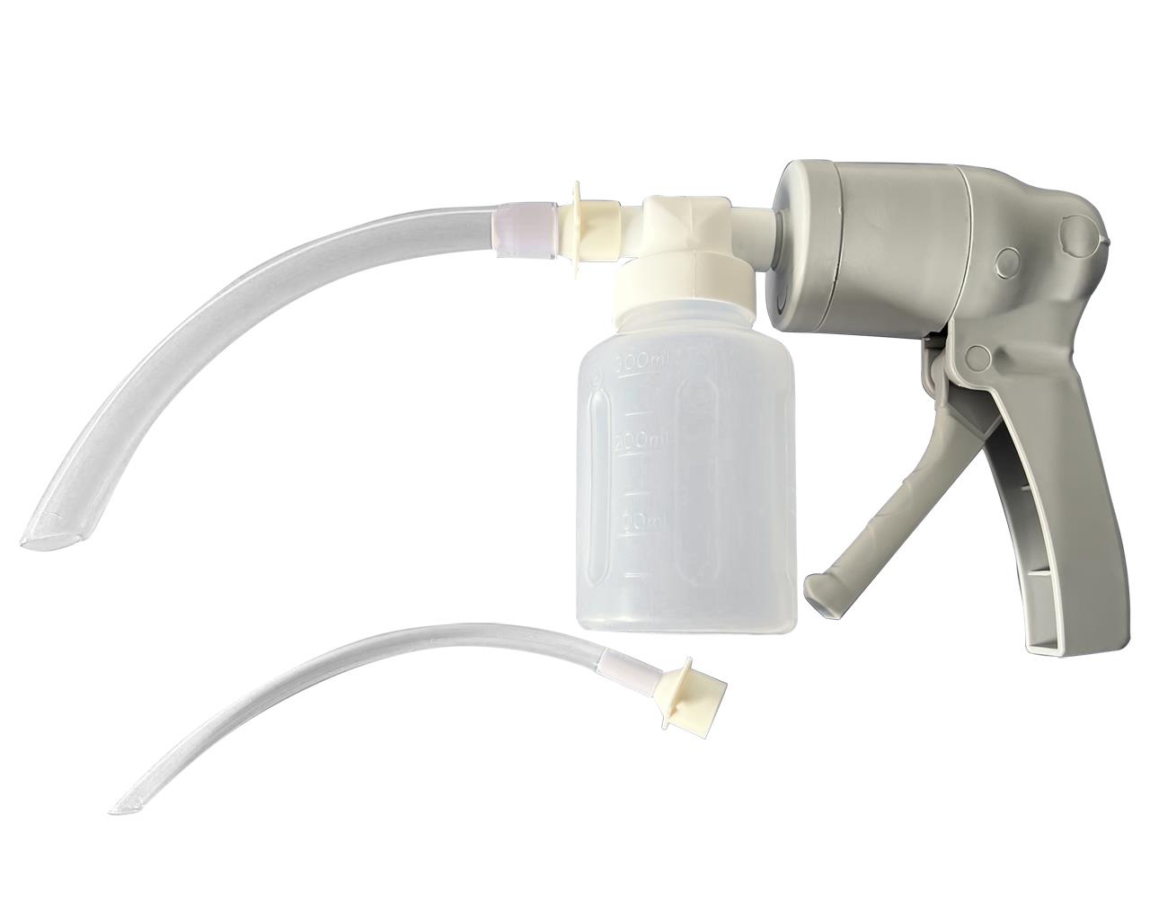 Aspirador leve e compacto para remover fluidos do sistema de suporte respiratório ou do trato respiratório.