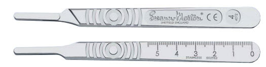 Porta-agulha graduado Swann-Morton em aço inoxidável n. 4 para lâminas n. 20, 21, 22, 23, 24.