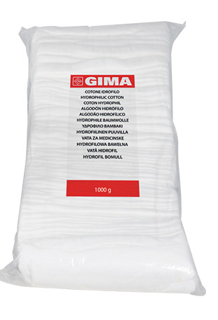 Algodão hidrófilo 100% para uso sanitário e cosmético, para a higiene, para a absorção do exsudado, para desinfecção da pele não lesionada.
