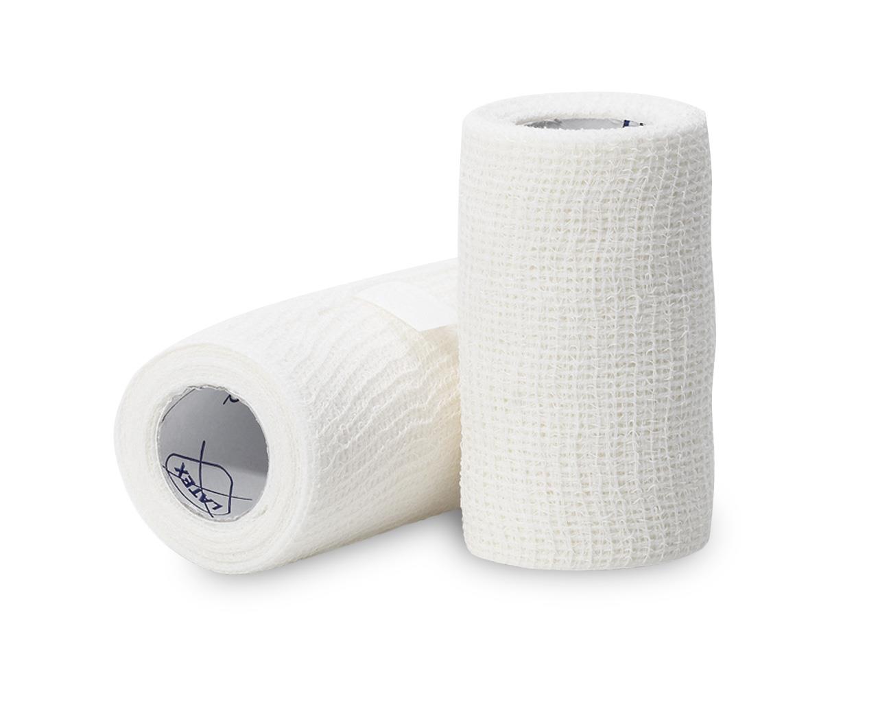 Ligaduras elásticas coesivas indicadas na fixação do penso, em ligaduras de suporte ligeiro e no tratamento de fracturas ligeiras.