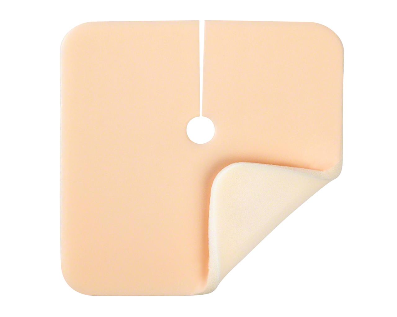 A espuma de poliuretano é suficientemente espessa para proporcionar uma elevada proteção do leito da ferida. A estrutura micro-alveolar assegura uma absorção elevada e prolongada do exsudado, mesmo sob pressão. O tamanho do orifício central foi concebido para acomodar os diferentes tamanhos de cânulas de traqueostomia.