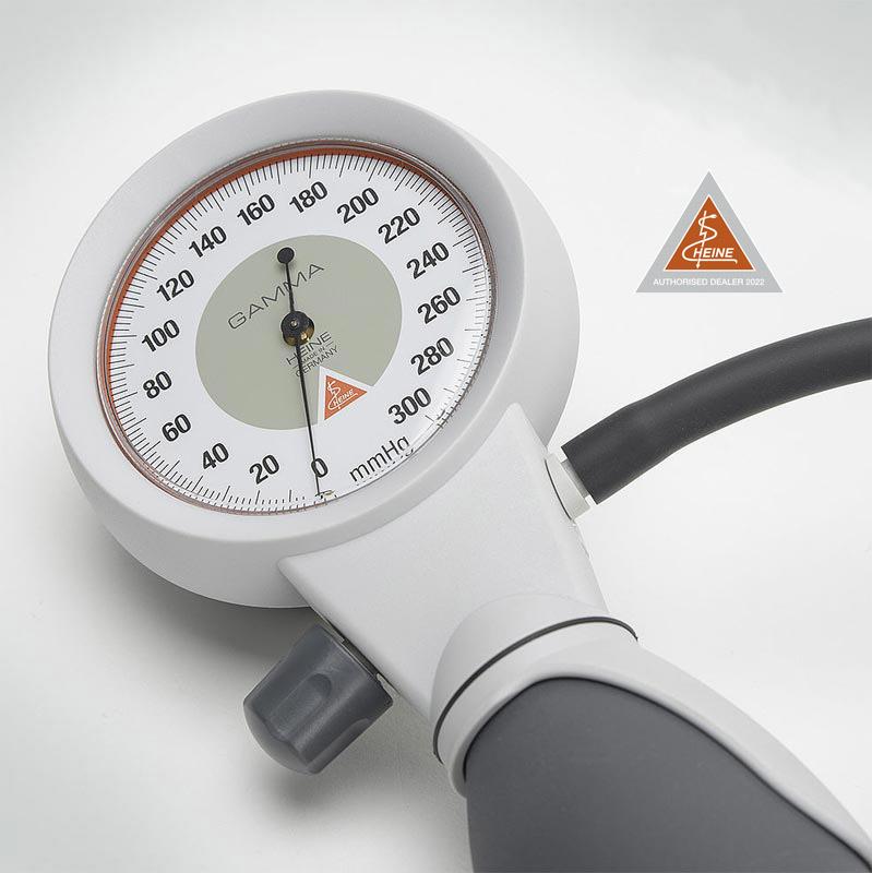 Esfigmomanómetro aneroide Heine G5, anti-choque, sem látex; com sistema de distribuição de pressão e manómetro protegido contra sobrepressão.