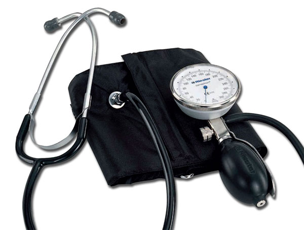 Um clássico esfigmomanómetro aneróide para automedição da pressão arterial, com estetoscópio incluído. Sanaphon® garante valores de medição exatos mesmo em pacientes com anomalias do ritmo cardíaco.