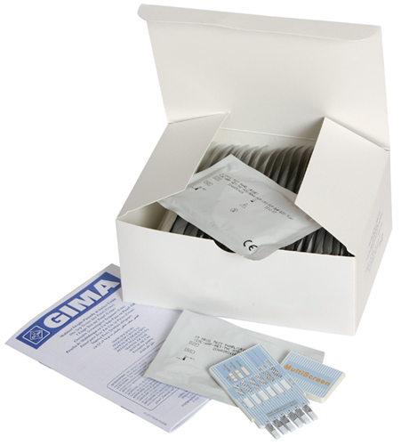 Tiras para a deteção de 12 tipos de drogas na urina. As substâncias detectadas são
