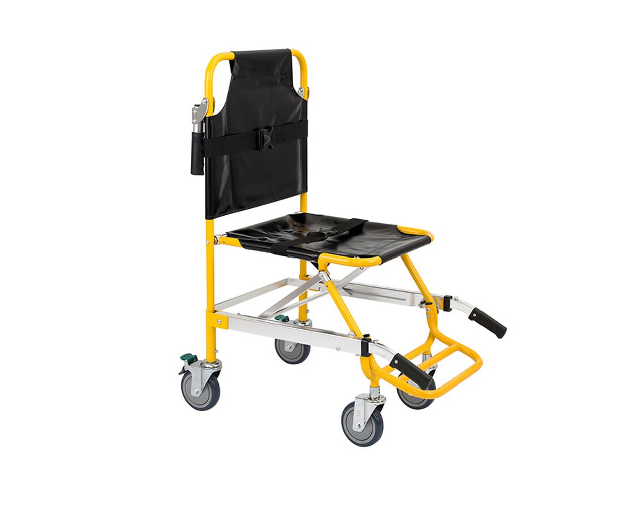 Cadeira de transporte dobrável em liga de alumínio resistente e PVC impermeável, adequada para subir e descer escadas com pacientes.