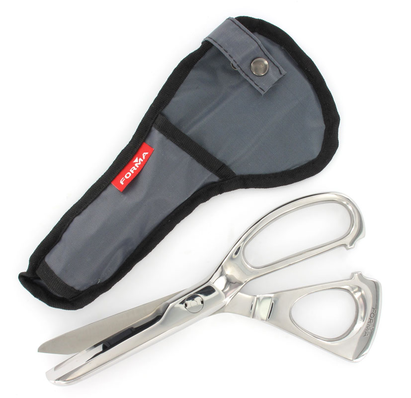 Tesoura de emergência em aço inoxidável AISI 420, útil para cortar cintos de segurança, roupas ou partir vidros. Pode ser utilizada como faca para cortar objetos espessos. Pega revestida a plástico colorido para máximo conforto.