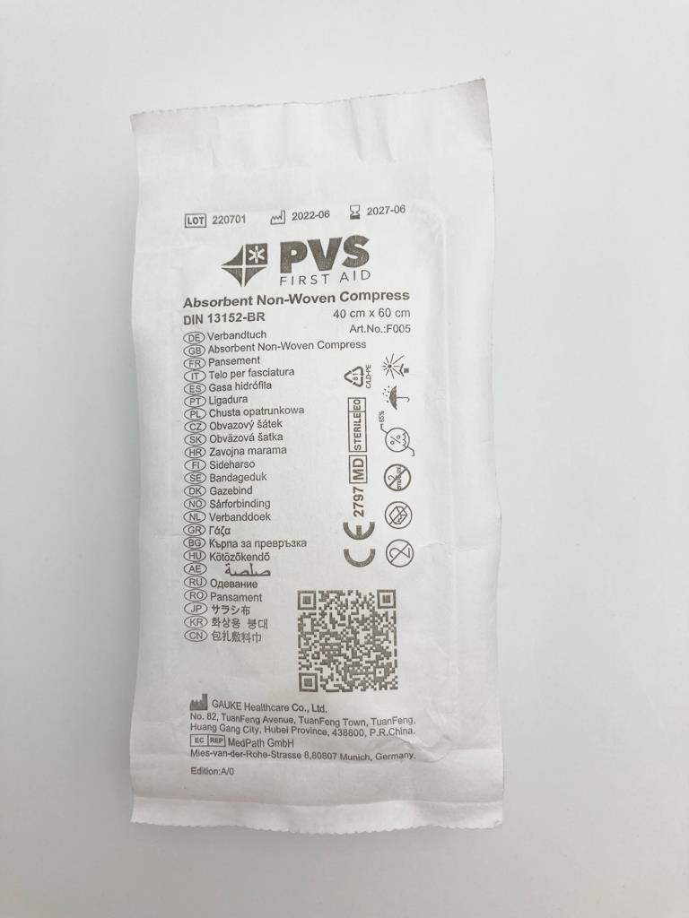 Penso para enfaixamento, estéril, em tecido não tecido, especialmente indicado em caso de queimaduras.