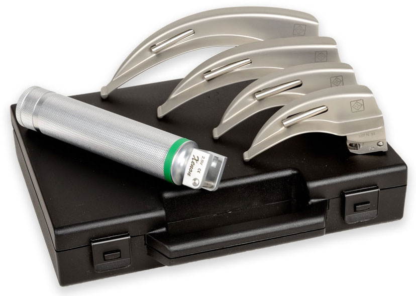 O conjunto inclui 4 lâminas MC. Intosh e um cabo totalmente compatível com todos os sistemas de fibra ótica populares no mercado: Heine, Welch, Allyn, Riester, Medicon e todos os que cumprem as normas ISO 7376/3. Sem látex. As lâminas destes fabricantes adaptam-se aos punhos da linha “Green GIMA” e vice-versa.