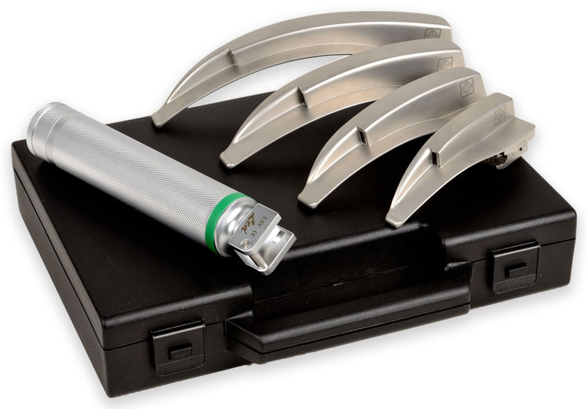 Set laringoscópio Maxlite F.O. LED 3,5 V adulto com 4 lâminas Mc-Intosh 1-2-3-4
