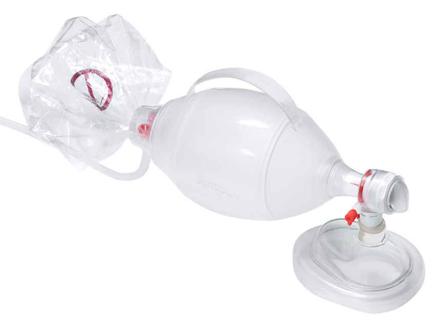 Os Ambu SPUR II são fornecidos numa bolsa com máscara, saco oxigênio e tubo oxigênio.