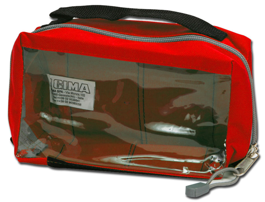 A bolsa E1 é um estojo retangular para kits de primeiros socorros e acessórios médicos, caracterizada por uma janela transparente, que facilita a visualização do conteúdo, e por uma larga faixa de velcro fêmea na parte de trás para fixação em suportes ou dentro de bolsas/mochilas.