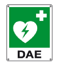 Sinalética em alumínio desfibrilador emergência com texto DAE