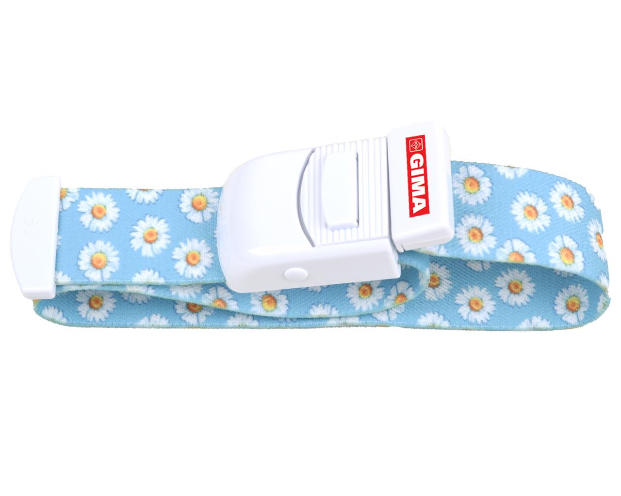 Garrote elástico com sistema de libertação instantânea, ideal para procedimentos clínicos que requeiram uma aplicação e remoção rápida e eficaz.