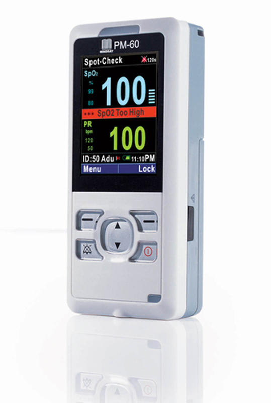 O PM-60 é um dispositivo leve, em miniatura, capaz de fazer verificação pontual e monitoramento contínuo de SpO2 e freqüência de pulso. Você determina os recursos e o desempenho, dependendo do modo operacional escolhido. Para verificações de sinais vitais simples, o modo de verificação pontual oferece as funções básicas incluindo atribuição automática de IDs de pacientes, estado de supressão de alarme e recursos de espera e desligamento automáticos. Para monitoramento de longa duração, o modo contínuo oferece entrada manual de IDs exclusivas de pacientes, gerenciamento de alarme e exibição de curva plestimográfica. Se a oximetria de pulso varia de um dia para o outro ou talvez de uma hora para a outra, o PM-60 é ideal como sua opção de dispositivo.