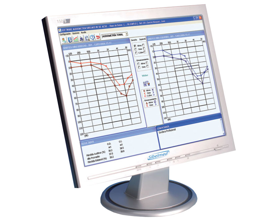 Software Sibelsound W50 para audiômetros Sibelsound, disponível como opção nos modelos 400-A e 400-AOM vendidos até março de 2023, mas já incluído no modelo 400-Supra.