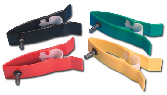 Set de 4 elétrodos de pinça para adultos de várias cores. Utilizáveis com cabos com ficha de banana.