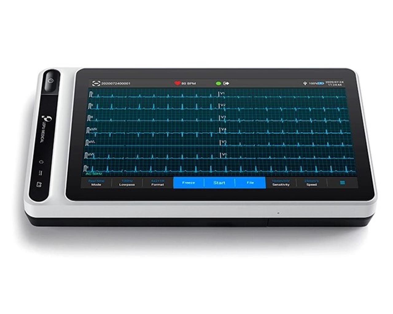 Permite o armazenamento, visualização, revisão, edição e upload de dados do paciente através da transmissão sem fio de dados de ECG via redes móveis e WiFi, além disso, os dados do paciente também podem ser exportados para uma unidade flash externa via conexão USB.