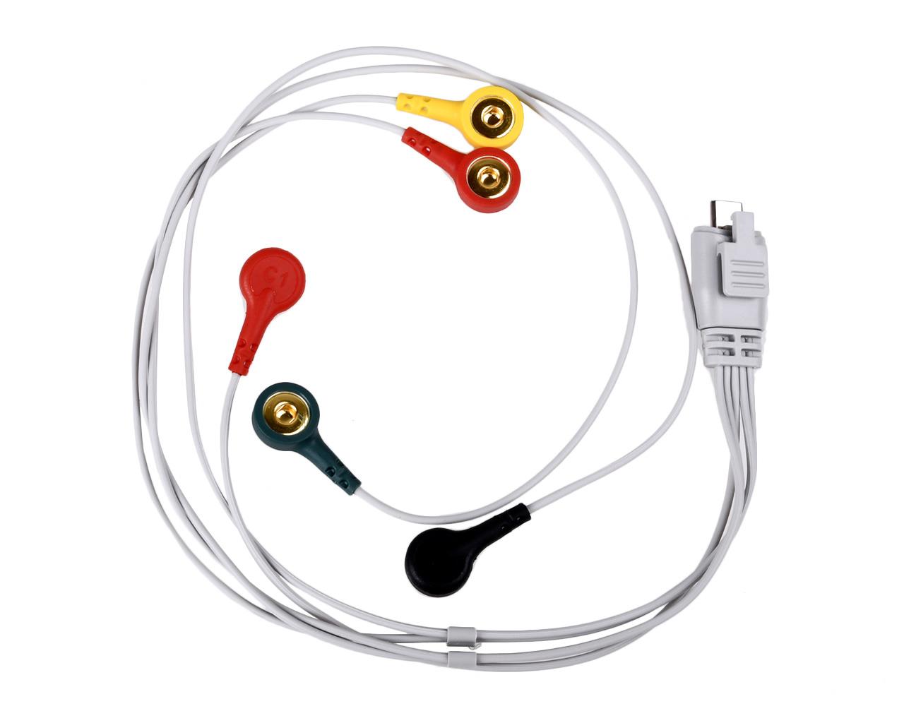 Cabo ECG com 5 terminais e encaixe tipo botão de substituição para Holter ECG M5 (cód. 111564) e opcional para Holter ECG M12.