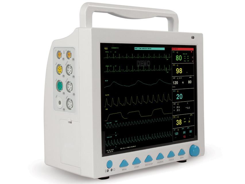 ECG, RESP, SpO2, NIBP, canal duplo e TEMP