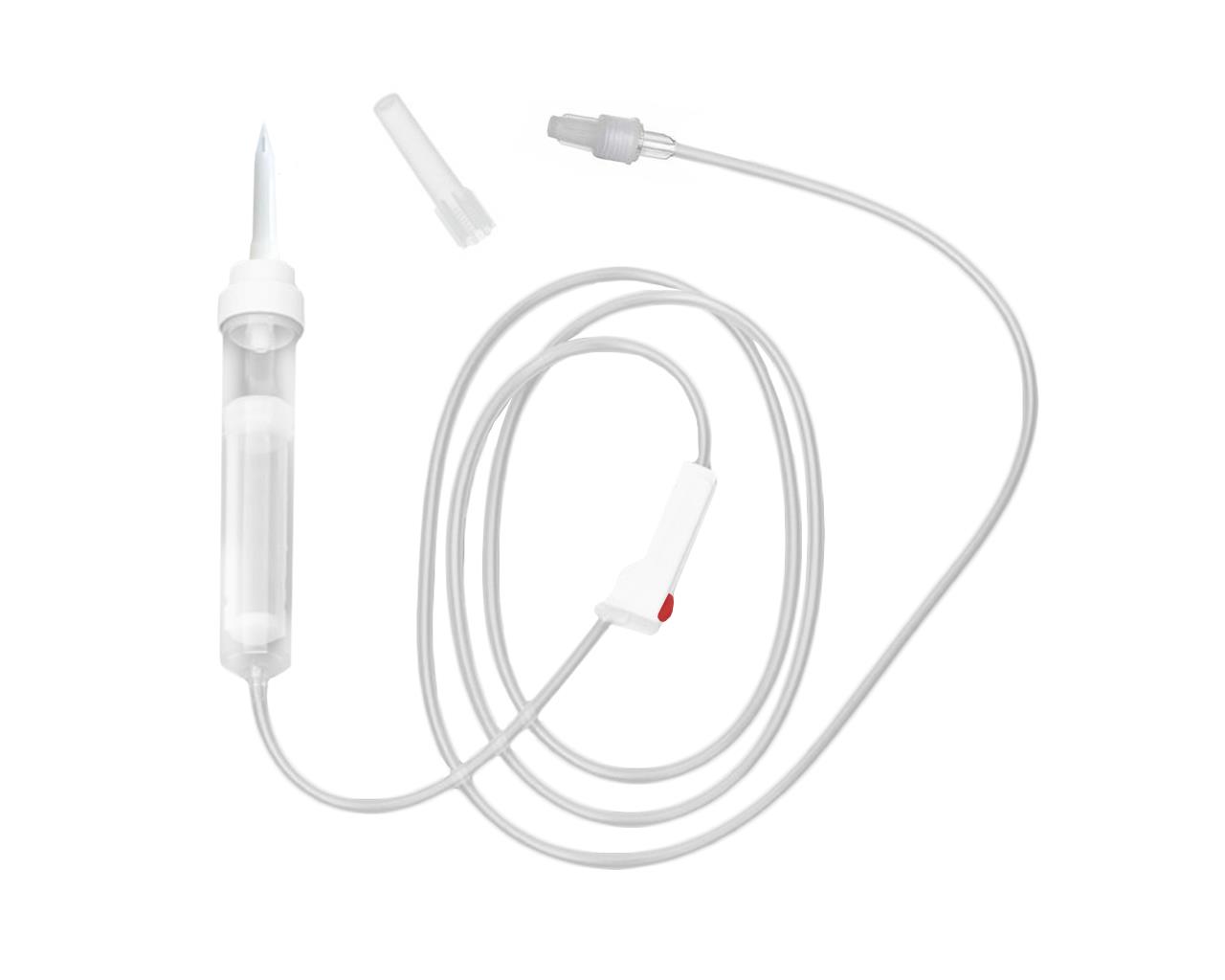 Conjunto para transfusão de sangue e hemoderivados, sem entrada de ar, para utilização com todos os tipos de bolsas de sangue.