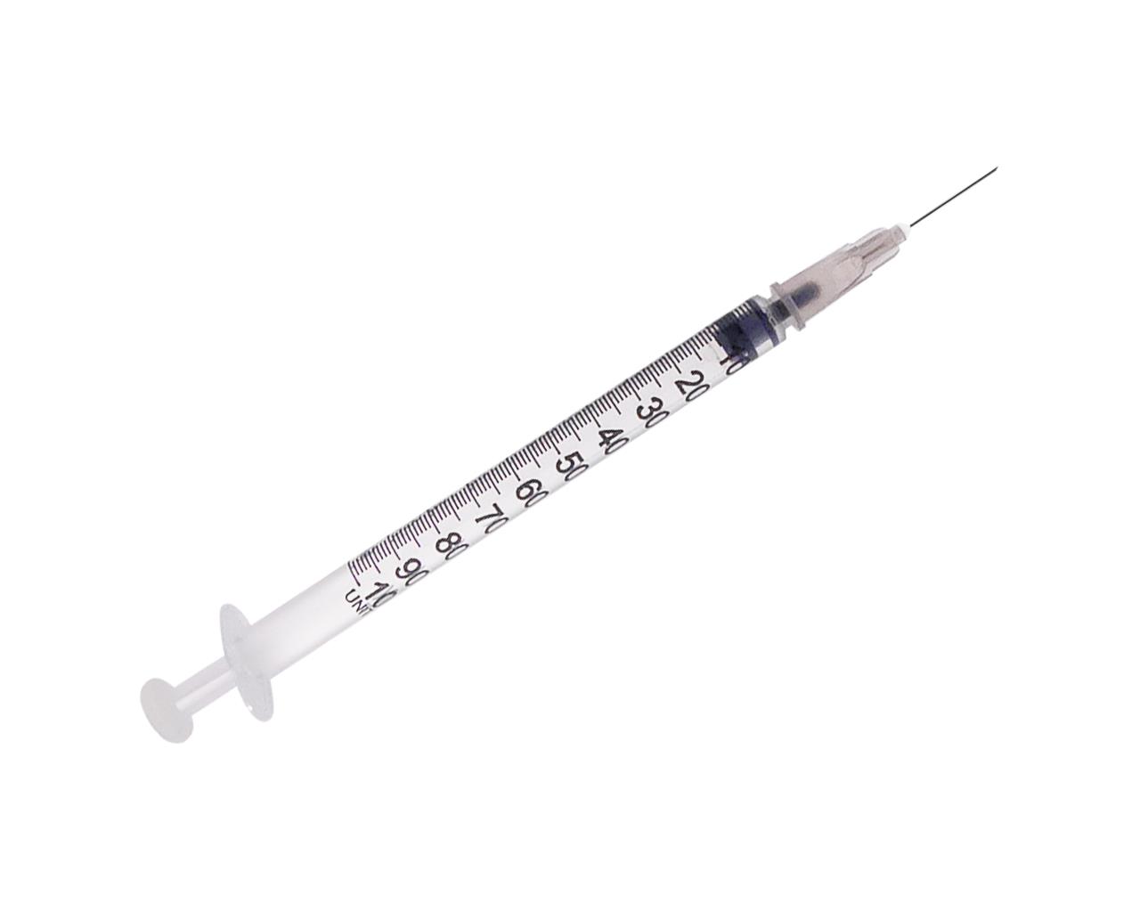 seringa descartável de 1 ml por insulina com agulha montada de 25 G cone luer concêntrico para injeção e infusão, destinada ao uso parenteral, estéril, em 3 peças, quimicamente estável (dispositivo invasivo, cirúrgico e de curto prazo).