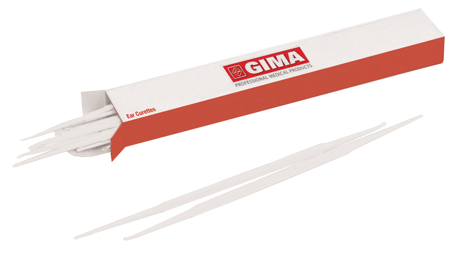 Cureta não iluminada com dupla função: um lado com colher e outro com furo. Embalado individualmente.