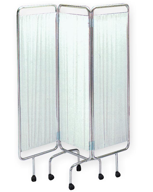 Biombo com rodas de 3 secção com estrutura tubular em liga de alumínio e painéis em material plástico lavável e ignífugo. Produção Italiana.