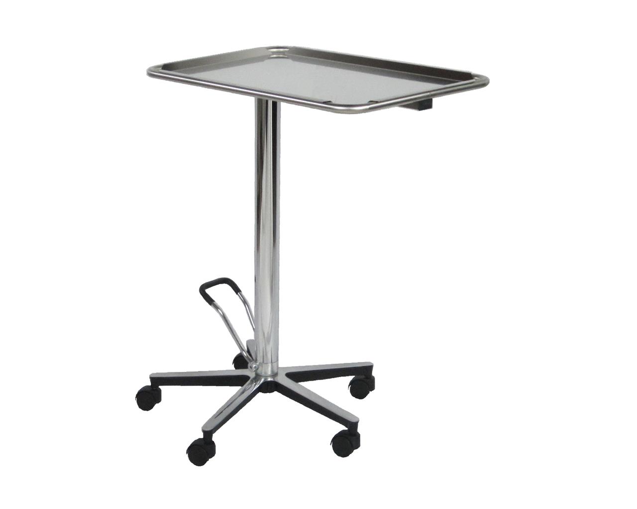 A mesa de Mayo hidráulica é um carrinho para instrumentos projetado para uso em salas cirúrgicas e centros cirúrgicos. É equipada com tabuleiro em aço inox AISI 304 e uma coluna em alumínio com bomba hidráulica para ajuste de altura.