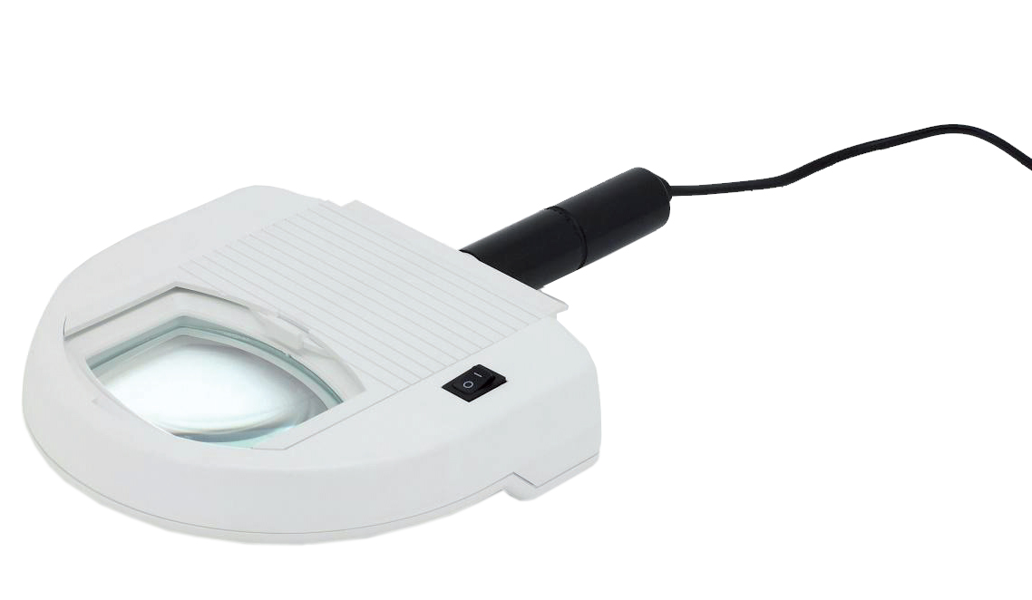 Este novo modelo de candeeiro tem uma lente de vidro de 10,5 × 7 cm com 3 dioptrias de ampliação.