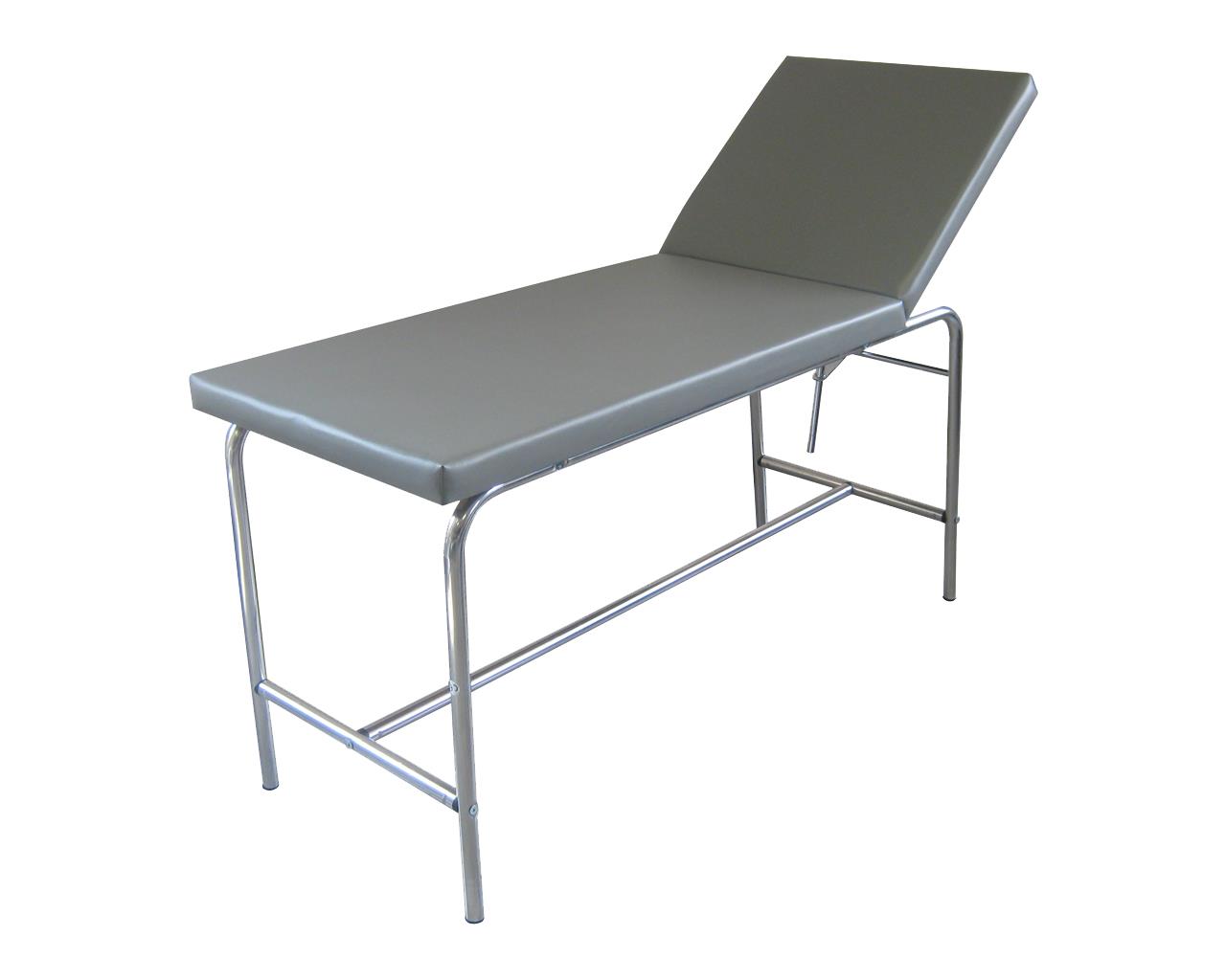 Única com dobradiças mesa de exame com estrutura de aço tubular cromadoVem completo com couro simulado colchão (cinza), encosto ajustável diferentes posições pensamentoEntregues em forma de kit