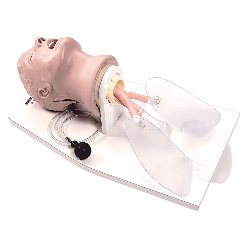 O simulador permite praticar a intubação oral, digital e nasal e com o uso do tubo endotraqueal (TE), da via aérea com obturador esofágico (EOA), da luz faringotraqueal (PTL), da via aérea com máscara laríngea (ML). ) e via aérea com sonda gástrico-esofágica (EGTA) e inserção de Combitube®.