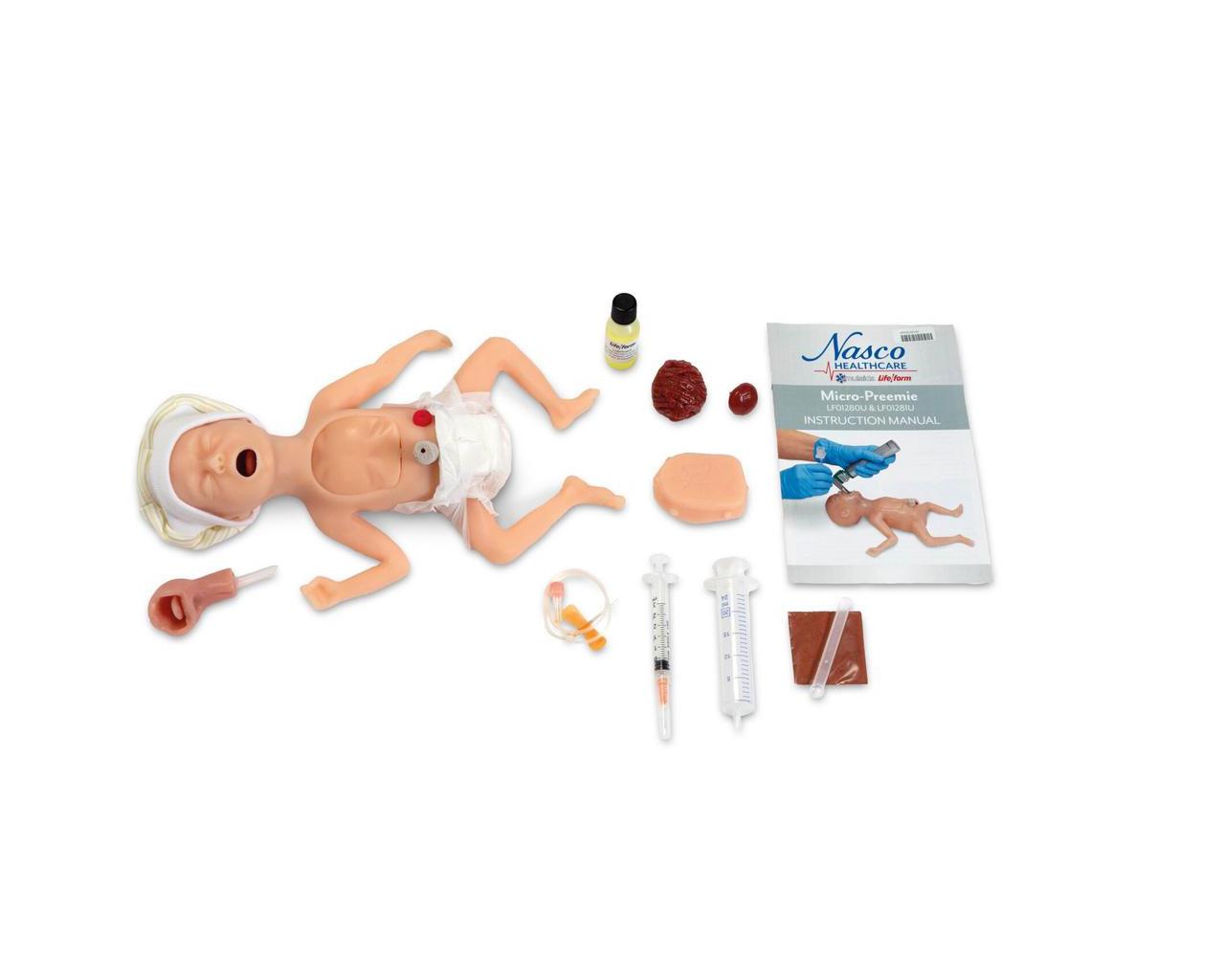 Vem com: fralda, chapéu (a cor pode variar), umbigo, onfalocele, defeito do tubo neural, bloqueio torácico bilateral, bloqueio torácico unilateral, vias aéreas, seringa de 3 cc, agulha borboleta calibre 25, lubrificante, sangue em pó.