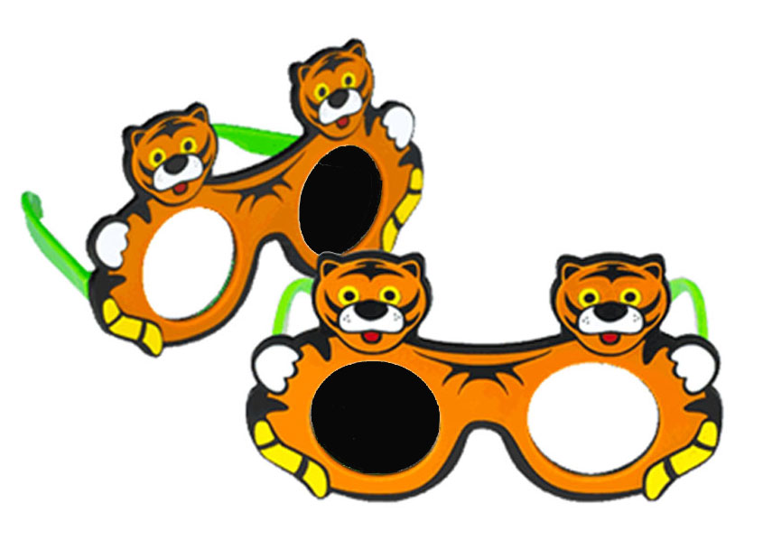 Oclusor com dois tigres desenhados. Ideal para uso durante os exames oftalmológicos pediátricos.