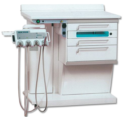 A unidade de ENT é muito ágil graças aos rodízios com borracha giratória, que tem uma superfície de trabalho composto de prova de riscos laminados, 2 pequenas e uma grande gavetas removíveis provido de divisórias internas, uma gaveta com lâmpadas germicidas para dentro para esterilização de instrumentos manter Otoplus é fornecido com: • uma bomba de sucção silenciosa de 25 l / min (34 l / min disponíveis a pedido), com válvula de controle de segurança para evitar overflow • Fonte de alimentação completa, com dispositivo de ajuste para dim Clar / Storz lâmpada, laringe espelho mais quentes • compressor de dois cilindros seco para insuflação tubária • 5-litros tanque de água destilada com sinal acústico para o nível Reservamos O braço articulado com bandeja instrumento holding completa-se com a cânula de sucção terminal, com seus acessórios, seringa de lavagem de ouvido com controle automático de temperatura da água, (um microprocessador que mantém a temperatura a um nível constante de 36 ° C) e insuflação terminal cânula