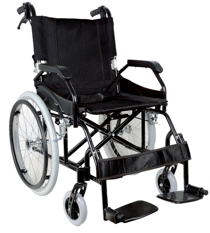 Cadeira de rodas ultraleve em alumínio com tecido preto
