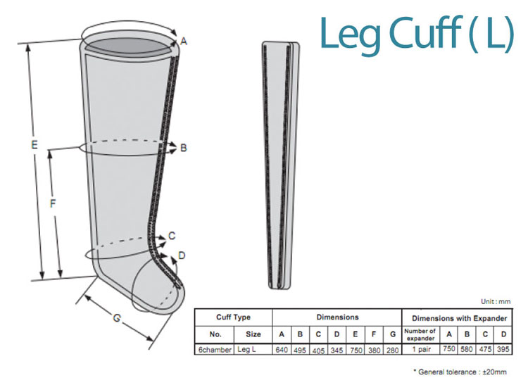 Botas tamanho XL com 6 zonas para pressoterapia MK400L.