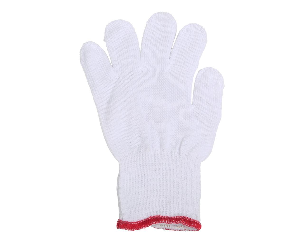 Luvas 100% de algodão, brancas, com punho extra longo e colorido para facilitar a identificação do tamanho.
